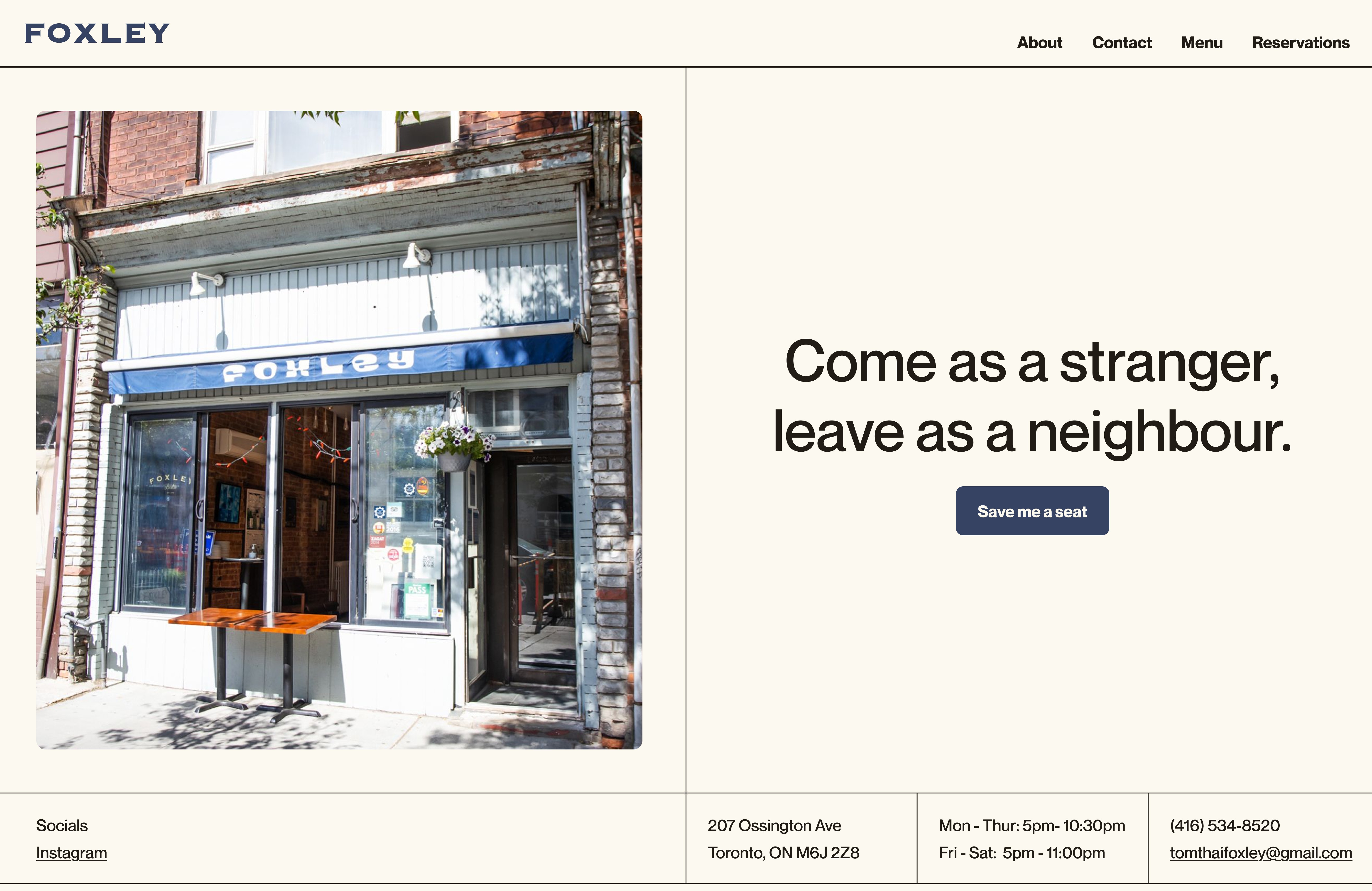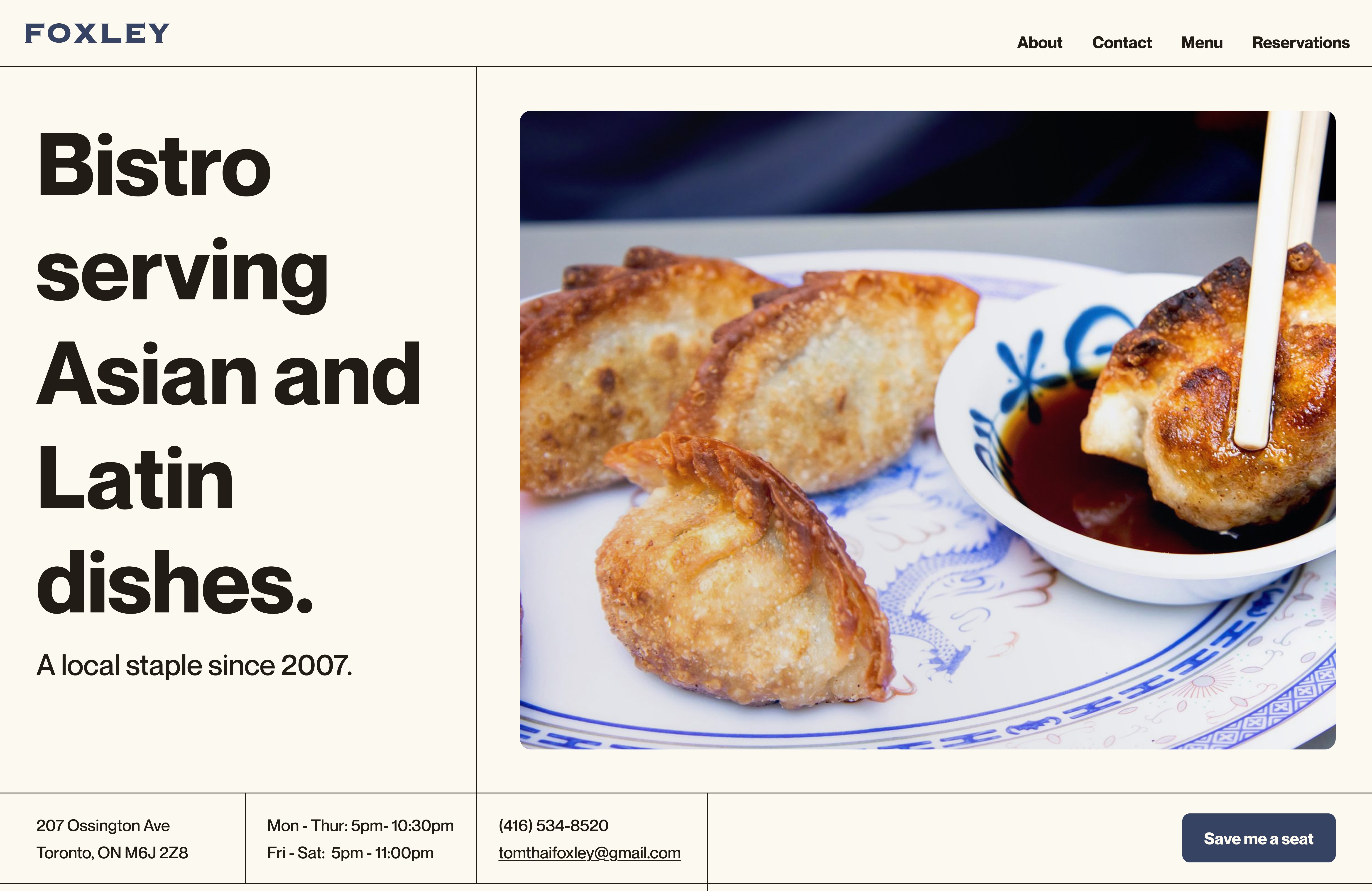 A refreshed digital presence for Foxley, a neighbourhood staple on Ossington serving Asian and Pan-Latin flavours since 2007. The original site felt dated and didn’t reflect the restaurant’s energy or character.