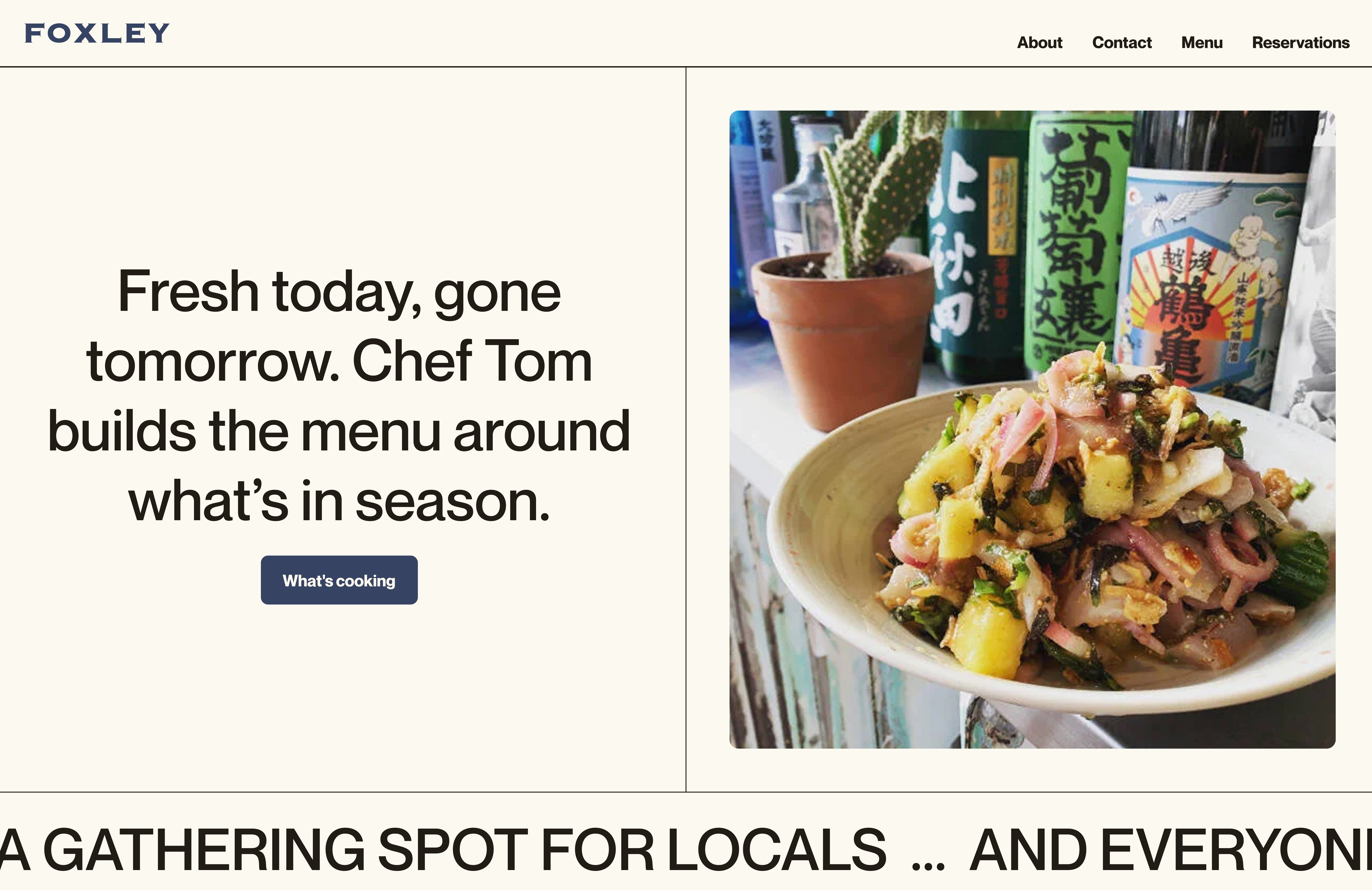 From sourced photography that captures the cosy dining room and hidden patio, to conversational copy and subtle animations that mirror the easy rhythm of a shared meal, every detail reinforces Foxley’s spirit. Guests leave the site with the same feeling they take from Foxley: welcome, connected, and full.